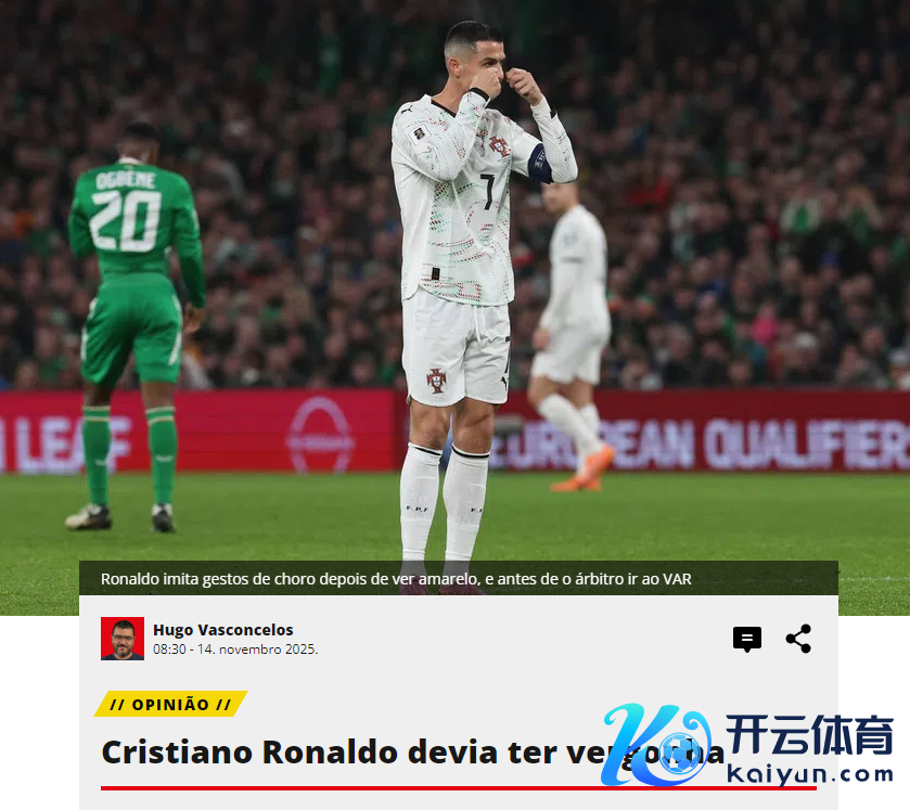 《球报》记者雨果-瓦斯康塞洛斯以“C罗应该感到欺侮”为题撰文指出,“东谈主总会失去默然,随契机发生这么的事情。然则,C罗还是40岁了,况兼他我方营造出了这么的氛围,但他却对此感到奇怪。最厄运的是,他成心肘击敌手把我方送了出去。”