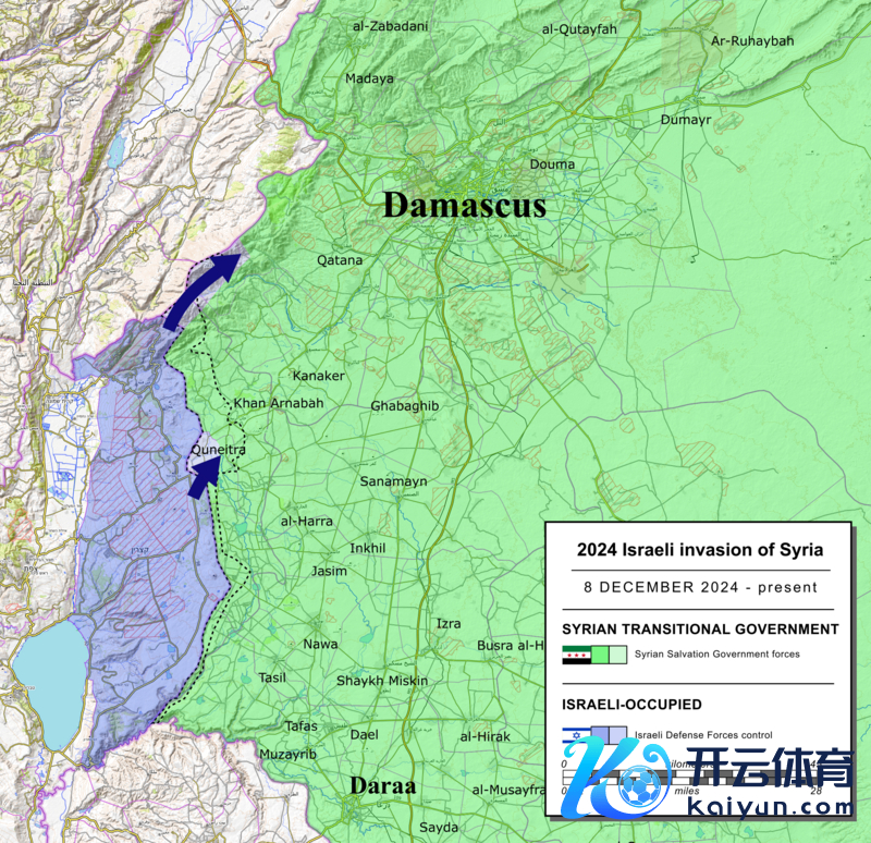 以色列的方针并不仅限于戈兰高地。12月9日,以色各国防部长伊斯雷尔·卡茨公开了以军在叙利亚南部伸开军事举止需要达成的四项方针:1、确保对缓冲区及隔邻叙利亚境内策略要点的完满松手;2、在缓冲区除外设置一个安全区,要点撤消该区域内可能对以色列组成要挟的重型火器和恐怖主义基础要道;3、进犯伊朗再行设置通过叙利亚邦畿和界限港口向黎巴嫩输送火器的通谈;4、连接糟蹋叙利亚境内的策略性重型火器系统,包括防空汇集、导弹系统和岸防要道。