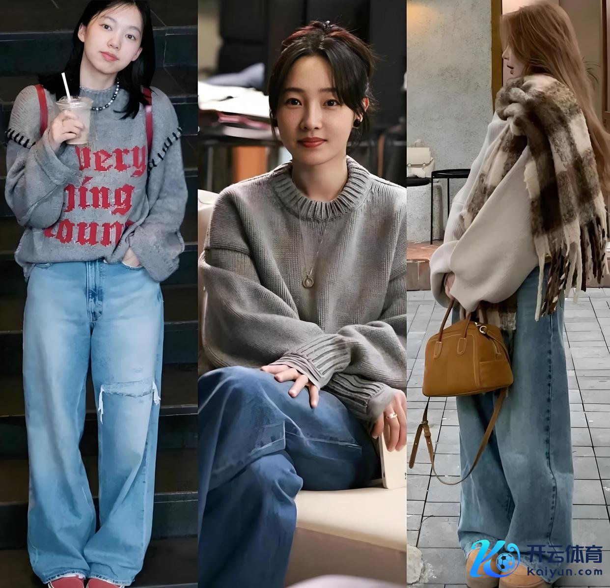 这时候,一条宽松的诚笃毛衣,配上水洗蓝牛仔阔腿裤,再蹬双小白鞋,就成了标配。毋庸胆寒收拾,也毋庸惦记造型翻车。哪怕仅仅去超市买点菜,也能被路东说念主多看两眼——不是因为惊艳,而是因为温和。